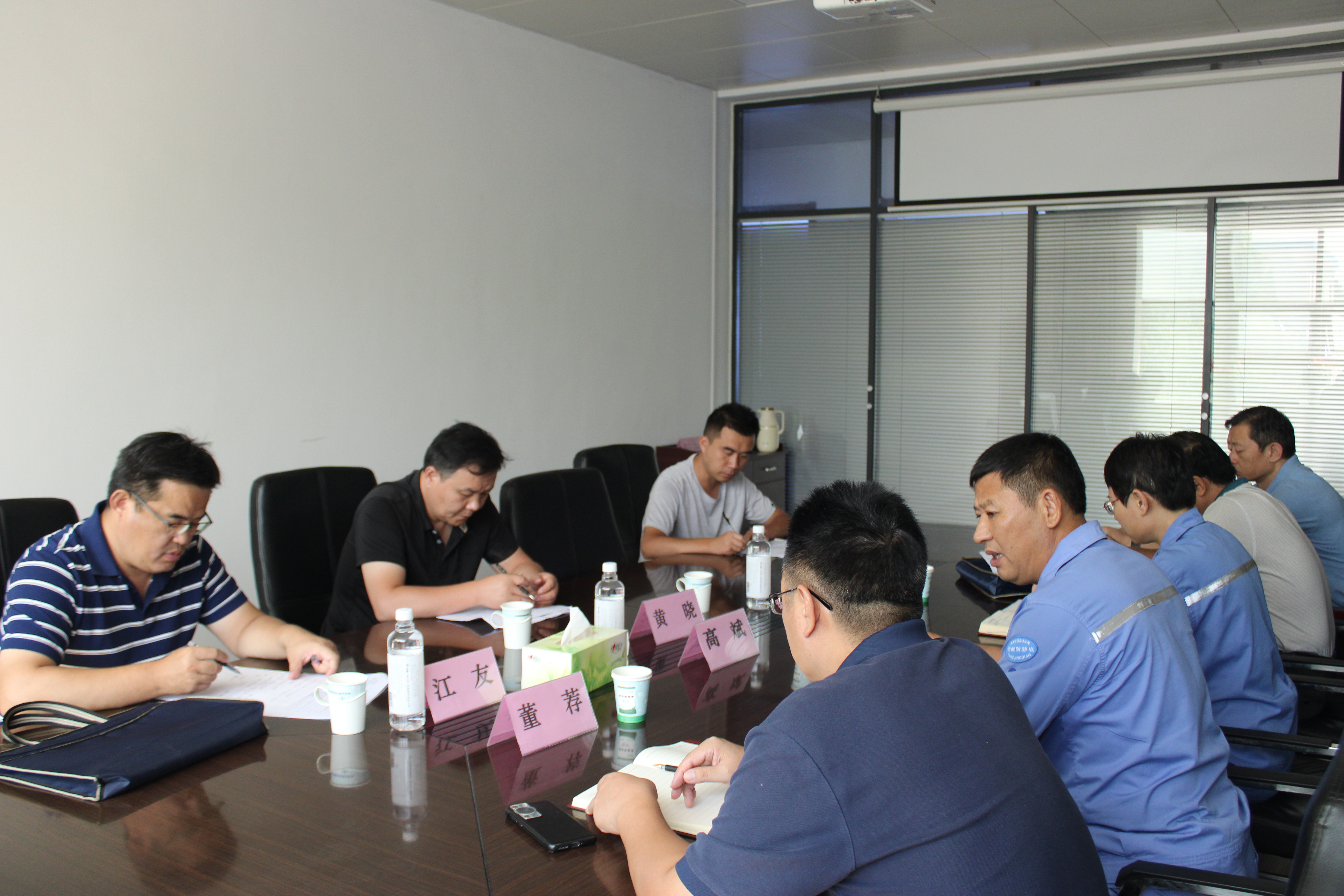 公司总经理高斌、副总经理卢英华陪同调研小组实地查看公司新项目建设及一体化数字管理平台项目的运行情况,总经理高斌重点向调研小组汇报了公司各个重点项目的投入、施工进度、未来规划等情况。